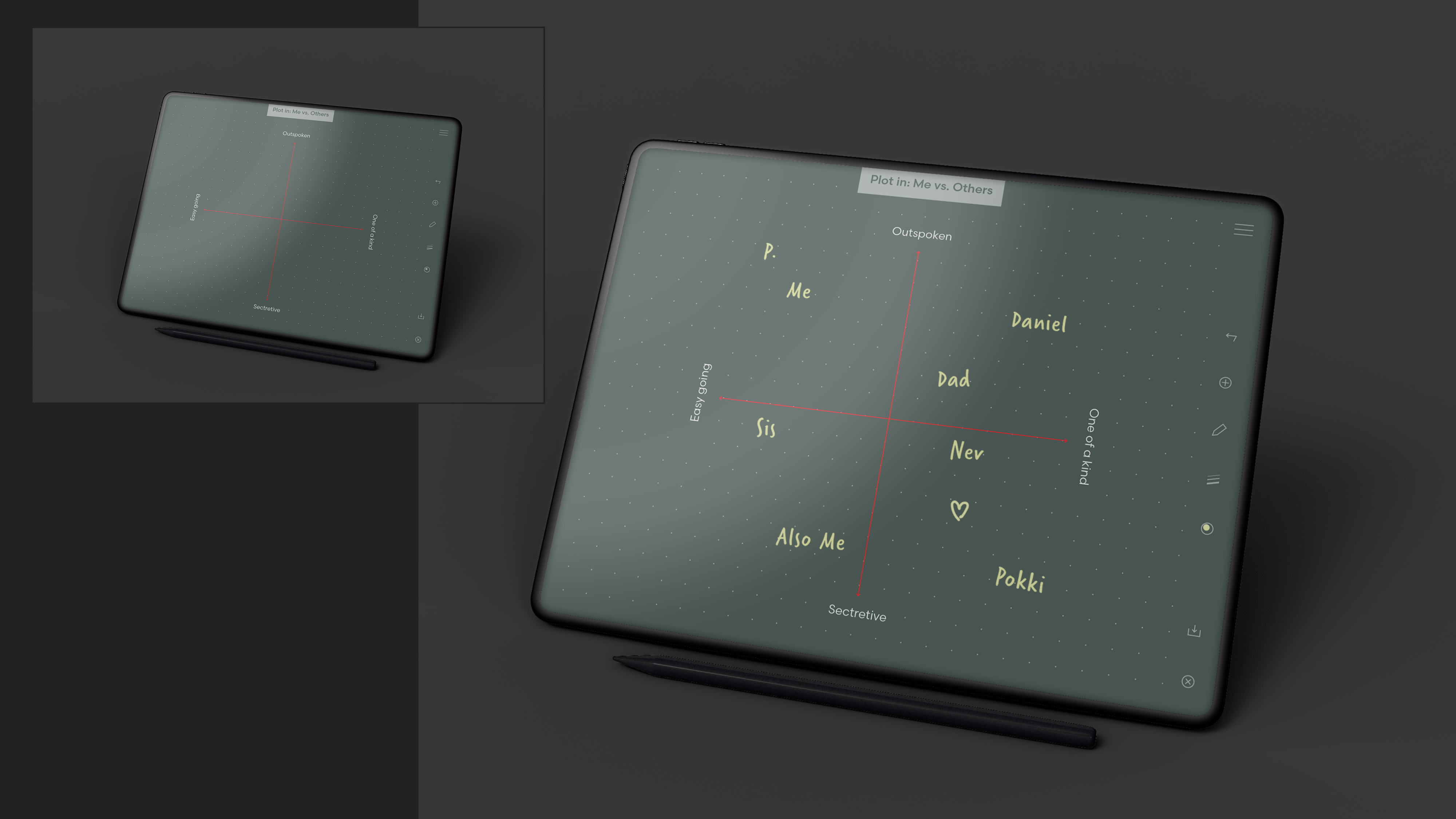 The canvas used in the digital journal has a dotted grid as a subtle guidance for the content you put