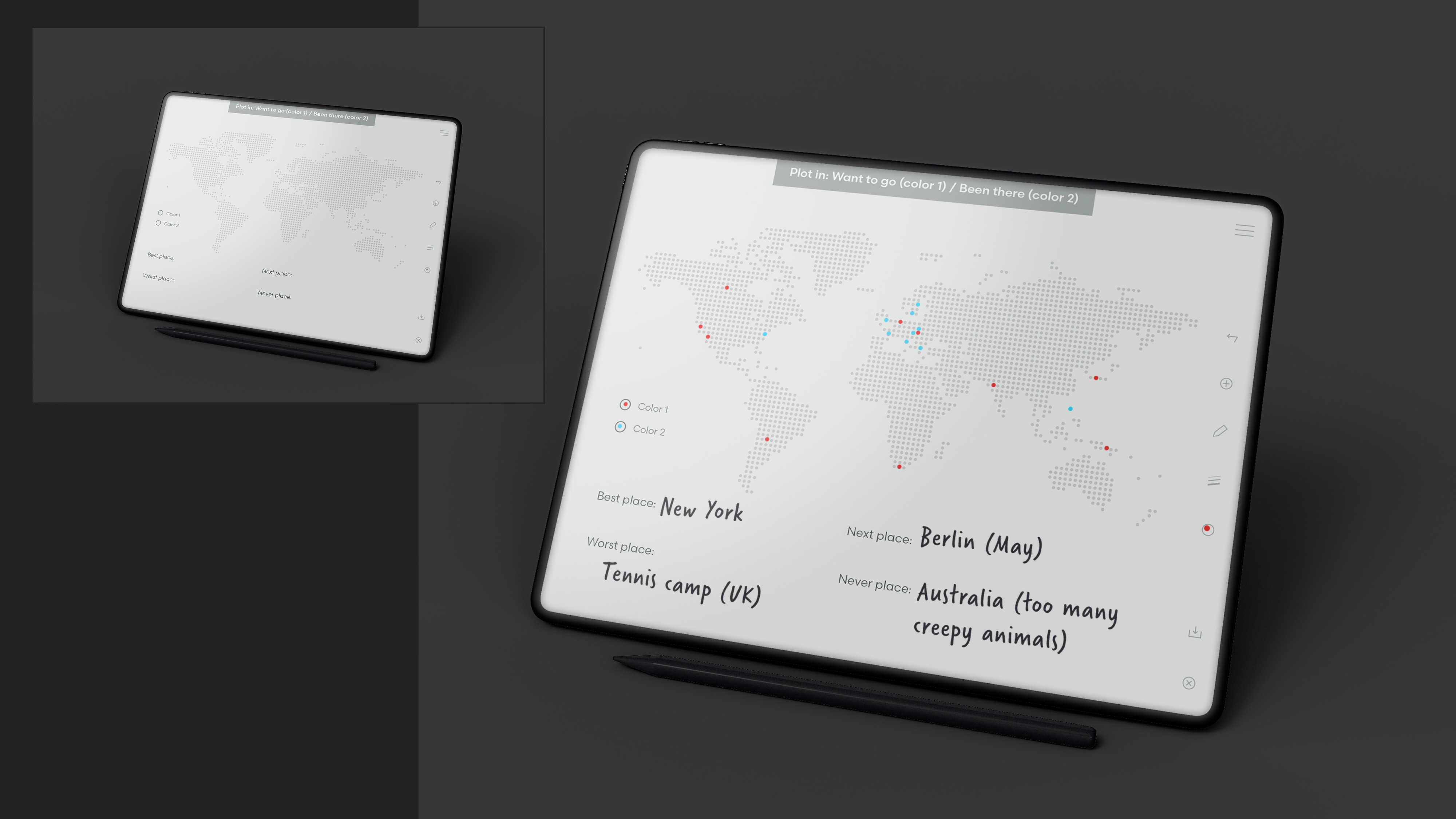 A map pin: travelling journal